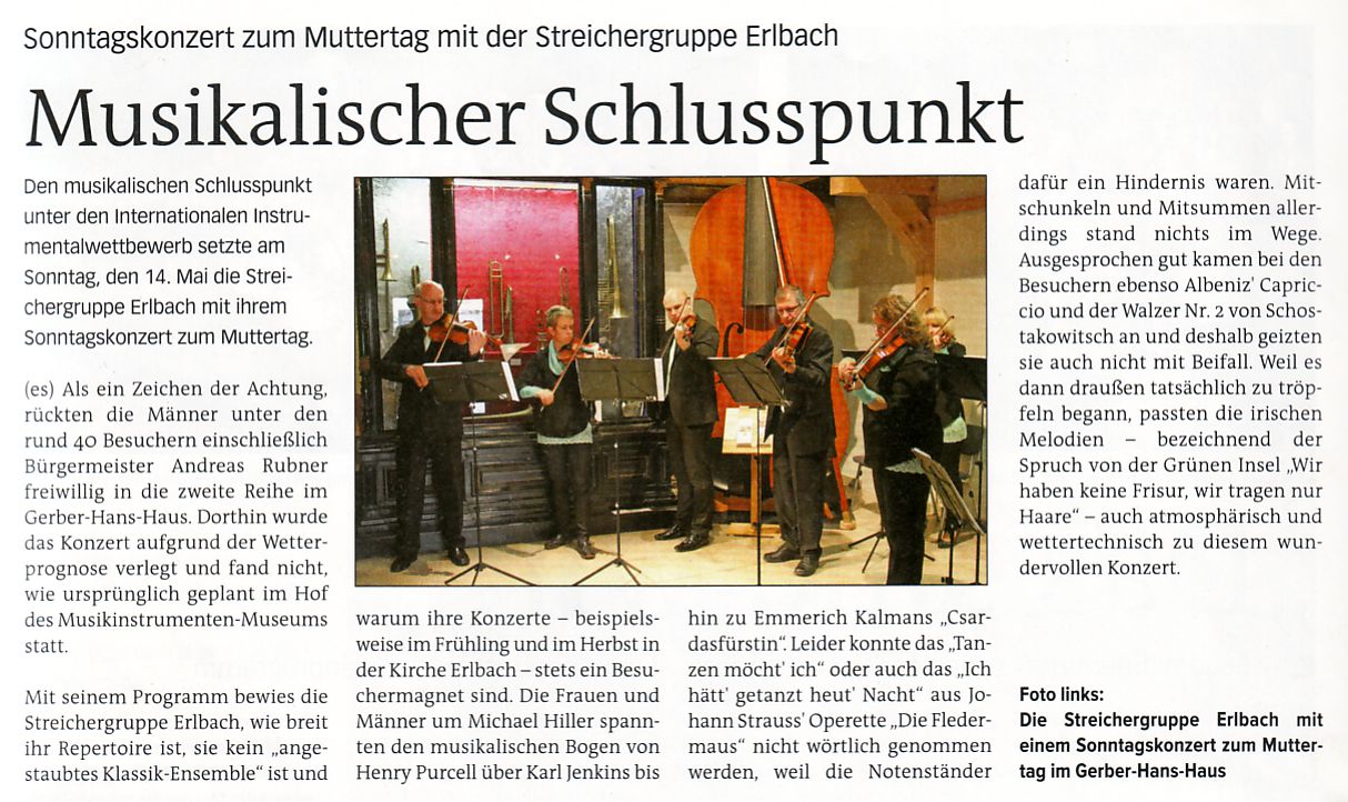 So., 14.05.2017 (Muttertag) 10.30 Uhr Musikinstrumenten-Museum Mkn. | Sonntags-Konzert zum Muttertag und zum Abschluss des "Internationalen Instrumentenwettbewerbs 2017" | Markneukirchner Zeitung Sonderausgabe zum 52. IIW ![]() |