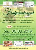 Sa., 30.03.2019 19.30 Uhr Kirche Erlbach | Frühjahrskonzert aus der Konzertreihe "Ein Podium für junge Solisten" mit Meline Sandner - Querflöte Nele Ganßmüller - Klarinette Martin Voigt - Posaune | |